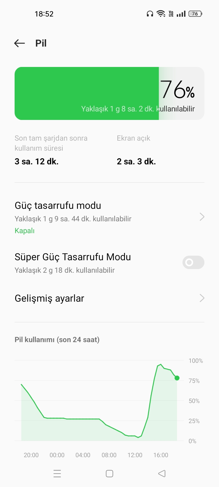 8 saat ekran süresi iyi görünüyor bu süreyi mobil veri ile mi yoksa wi-fi ile mi aldınız o da önemli mobil veri ile ise çok iyi demektirEkran açık kalma süresi 8 saatti.
